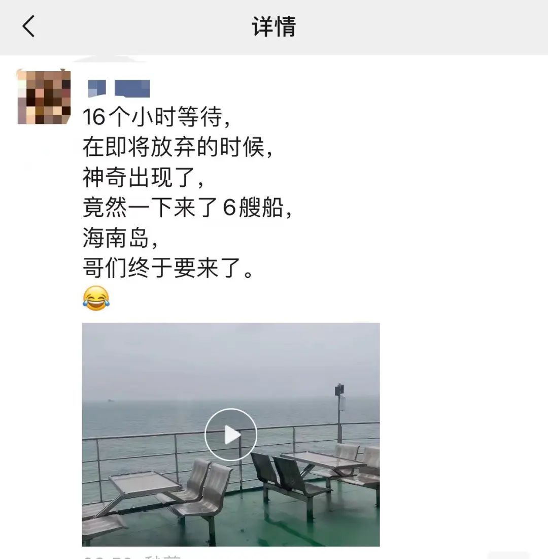 今天在社交平台上,不少人都像陈先生一样,堵在了去徐闻港口的路上。